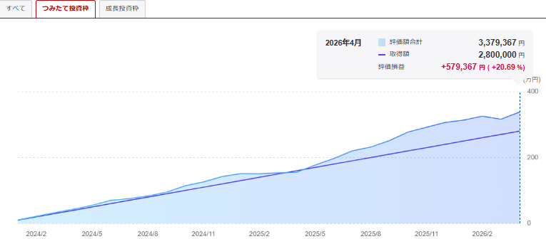 新NISAつみたて投資枠での保有商品(2026年4/7日時点)